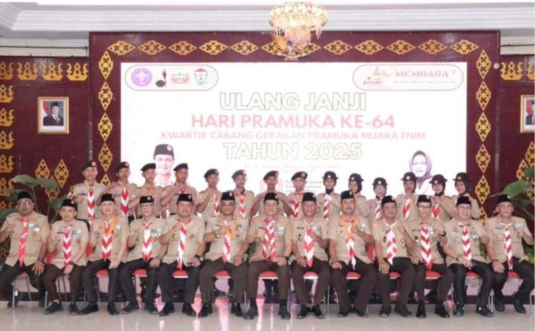 ONLINEKITE.CO.ID,Muara Enim – Suasana khidmat menyelimuti upacara janji ulang peringatan Hari Pramuka ke-64 Kwartir Cabang (Kwarcab) Gerakan Pramuka Kabupaten Muara Enim, yang dipimpin langsung oleh Bupati Muara Enim, H. Edison, S.H., M.Hum., di Balai Agung Serasan Sekundang (BASS), Rabu (14/8/2025).